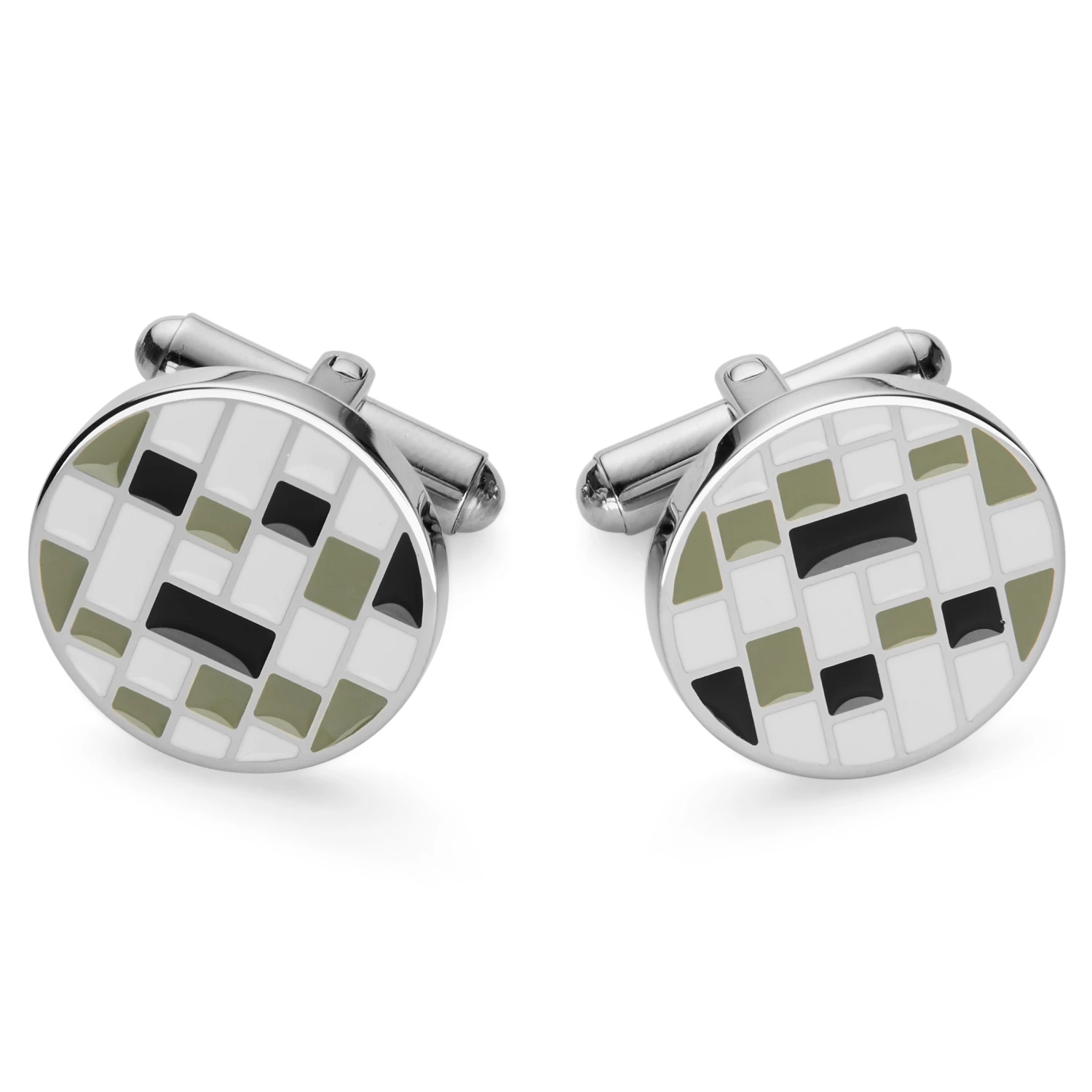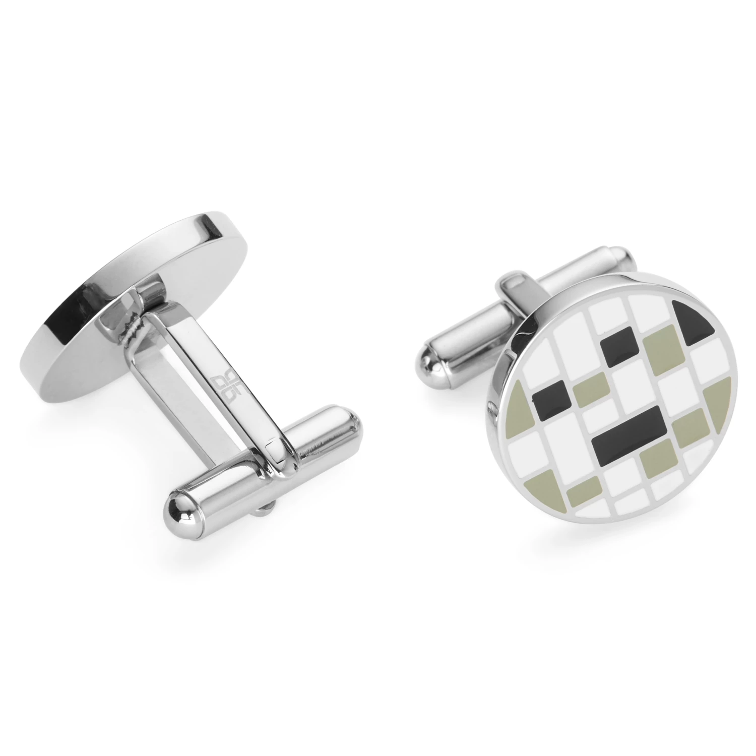 Bohemian Revolt Geo Remix | Black, White & Grey Chequered Stainless Steel Cufflinks