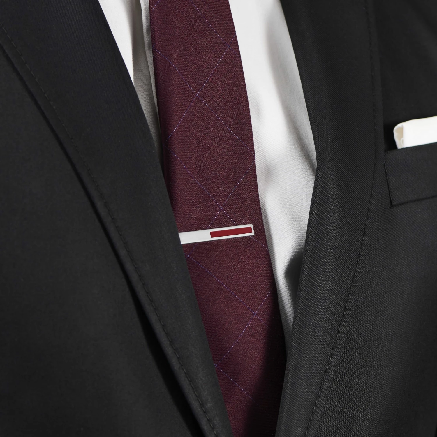 Crafted in silver-tone stainless steel with a touch of red, this tie bar wears easily for any occasion.