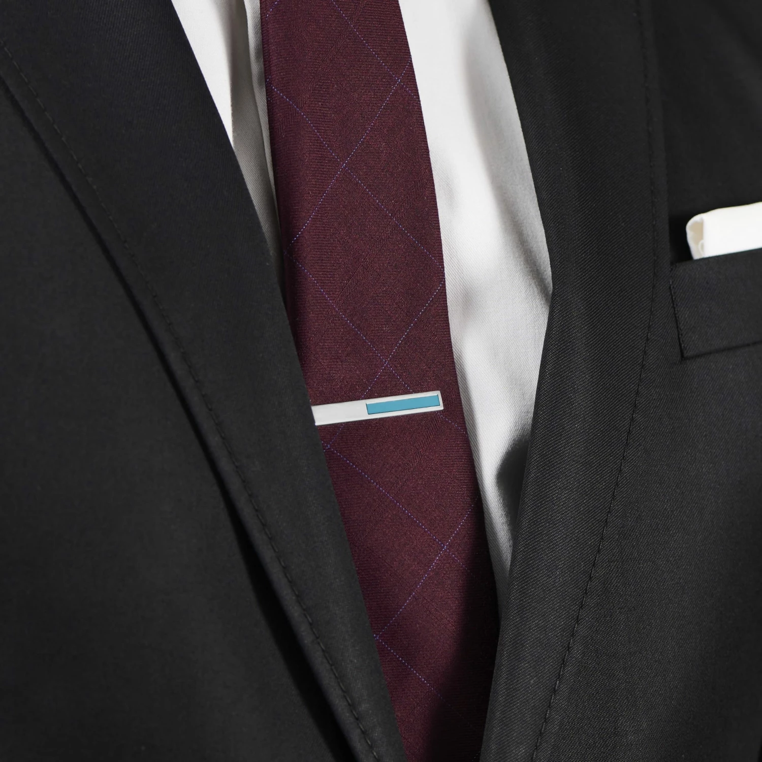 Mix and match this polished silver-tone tie bar with other pieces in the Geo Remix Collection. Its touch of light blue was chosen specifically to match with the cufflinks and lapel pins and create a thought-out look that isn’t forced.