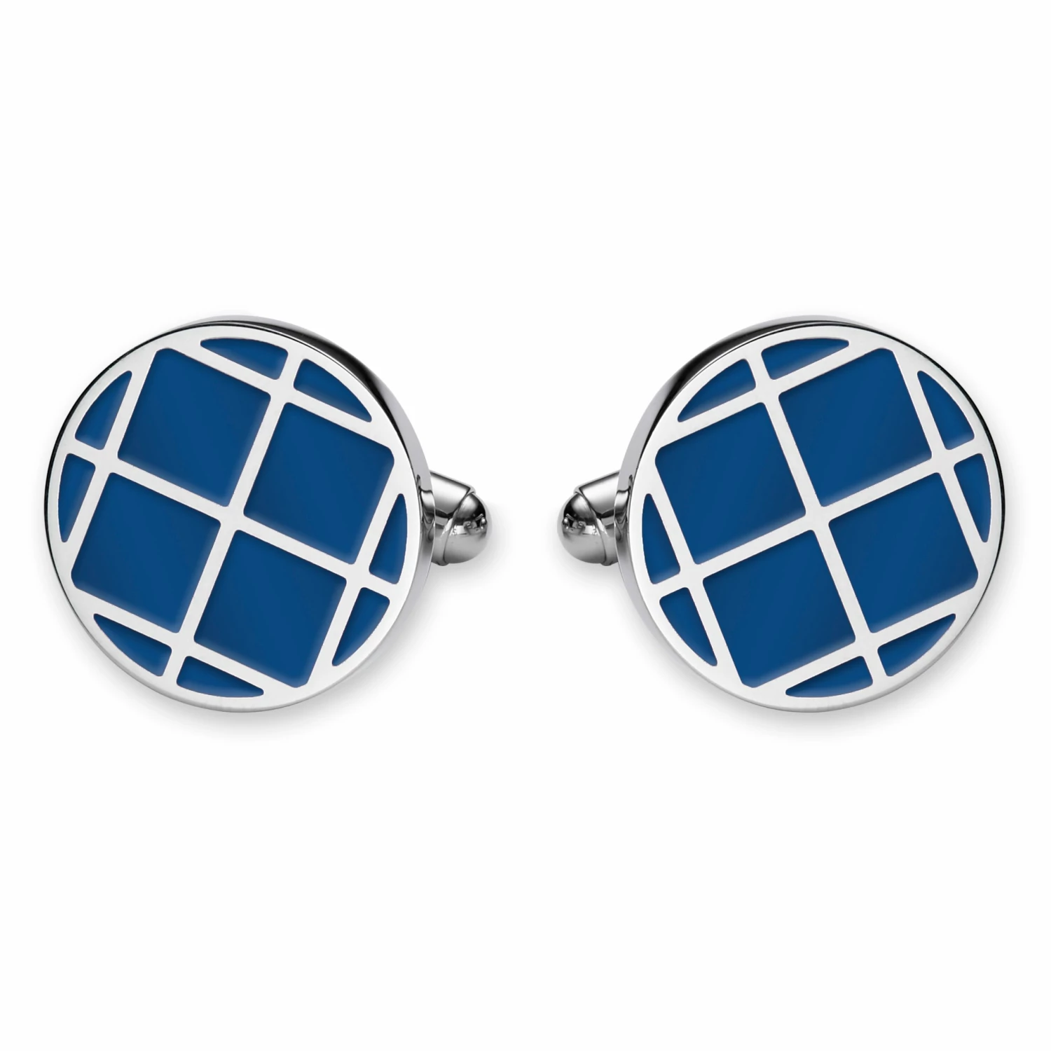 The simplest design details have the most impact on your overall look. In the case of these cufflinks, a touch of blue and a bit of geometry take these from dull to stylish.