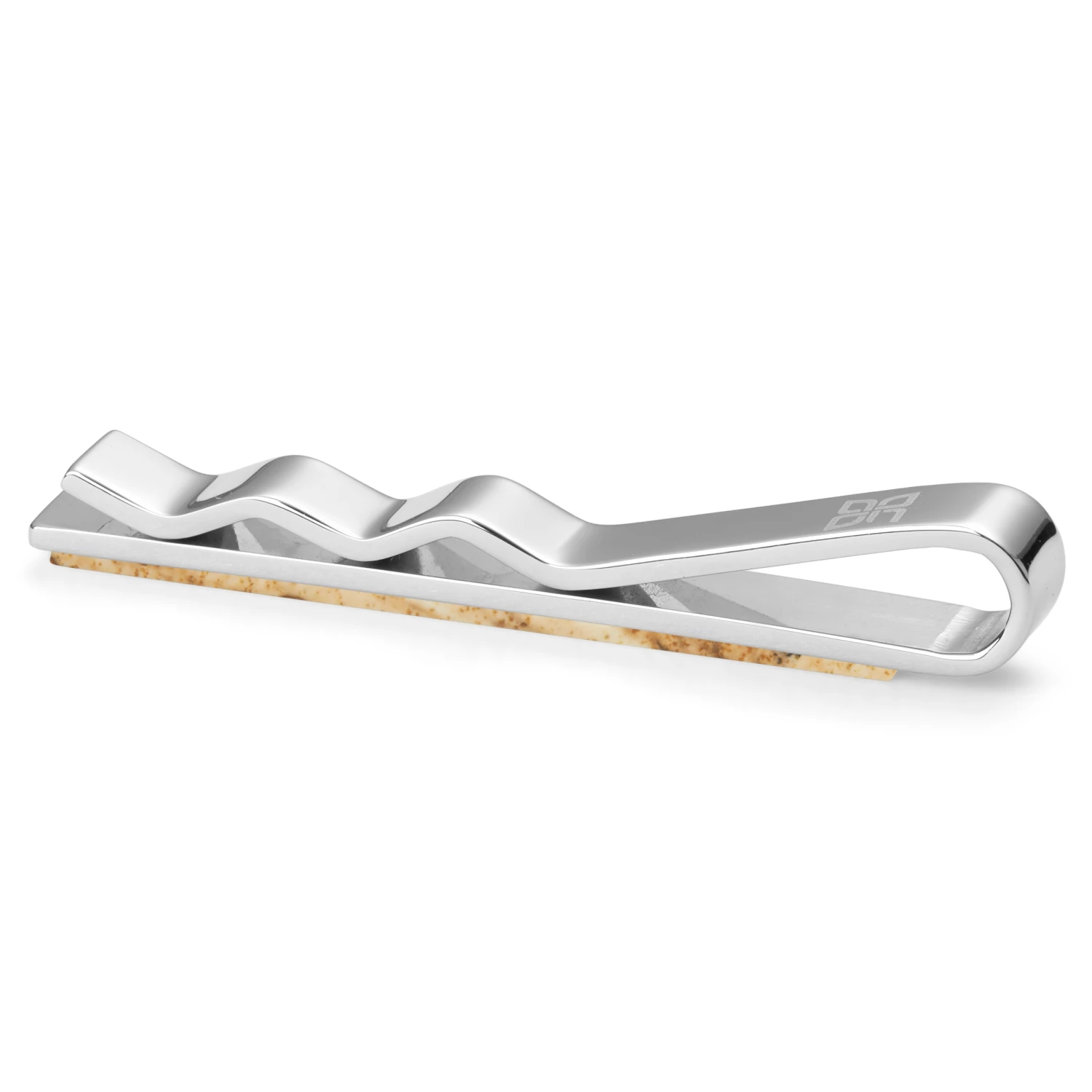 Crafted in polished stainless steel with a Madagascar stone as the focal point. Slides on and keeps your tie from accidentally hailing a taxi.