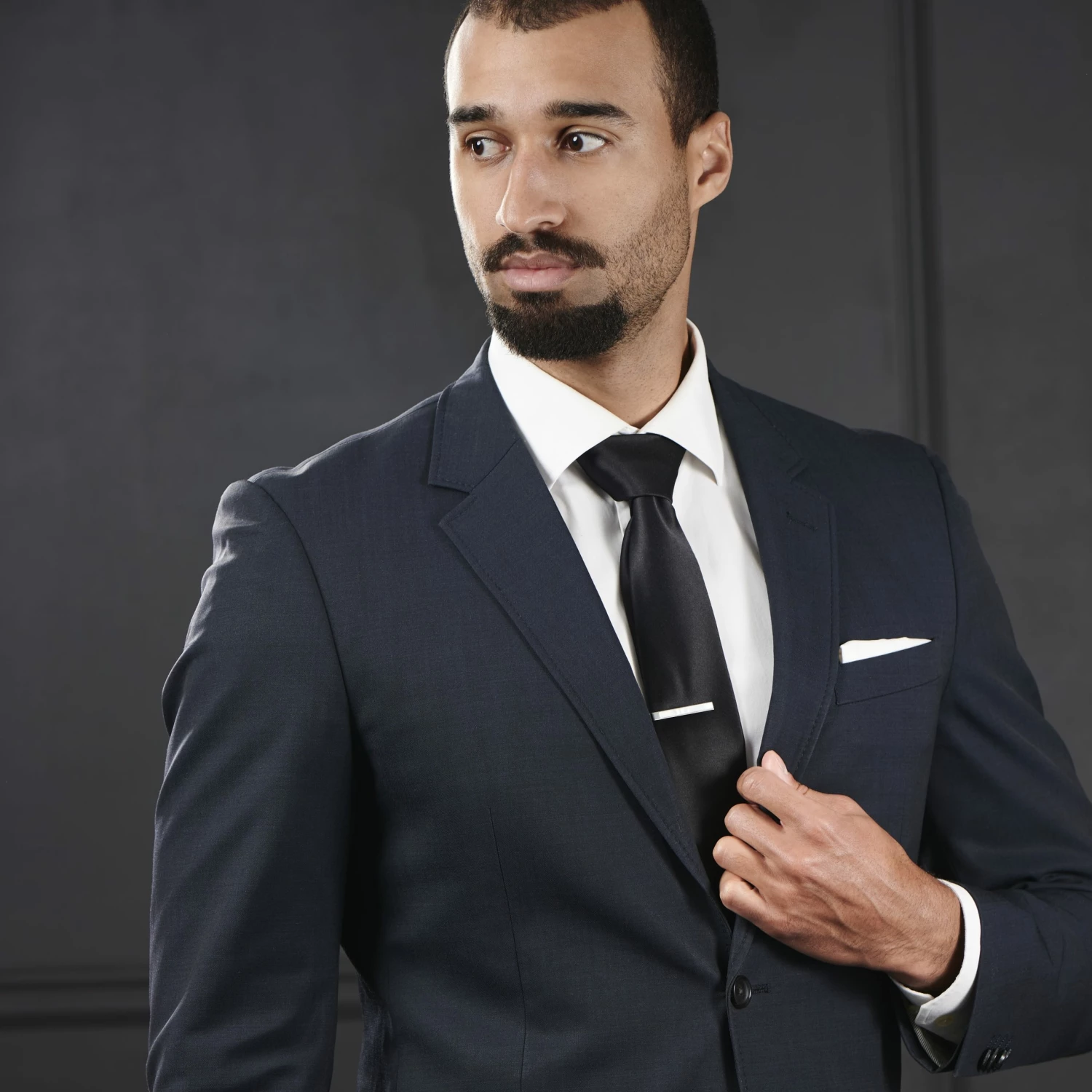 Easily matches other pieces in the collection… or wear it alone with a dark-colored tie for a striking contrast.