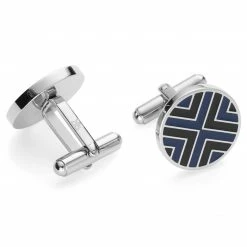 Bohemian Revolt Geo Remix | Round Royal Blue & Black Stainless Steel Cufflinks