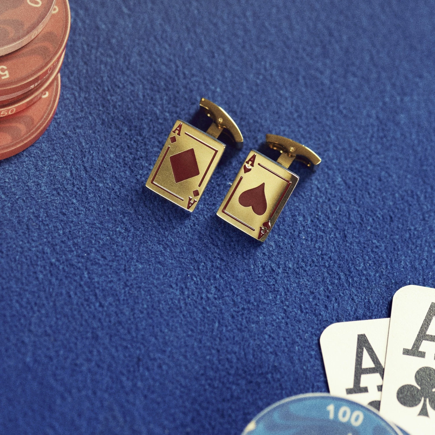A pair of ace cufflinks to draw attention away from the ones you have hidden up your sleeve.