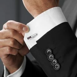 Warren Asher Rectangular Silver-Tone & Burgundy Stones Cufflinks
