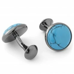 Warren Asher Round Gunmetal & Turquoise Gemstone Cufflinks