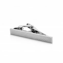 Warren Asher Short Silver-Tone Striped Tie Clip