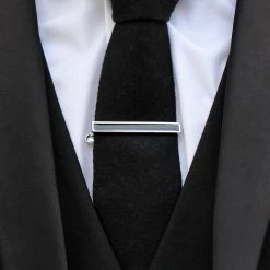 Warren Asher Silver-Tone & Black Bar Tie Clip