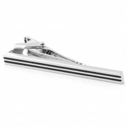 Warren Asher Silver-Tone & Black Brass Two Line Tie Clip