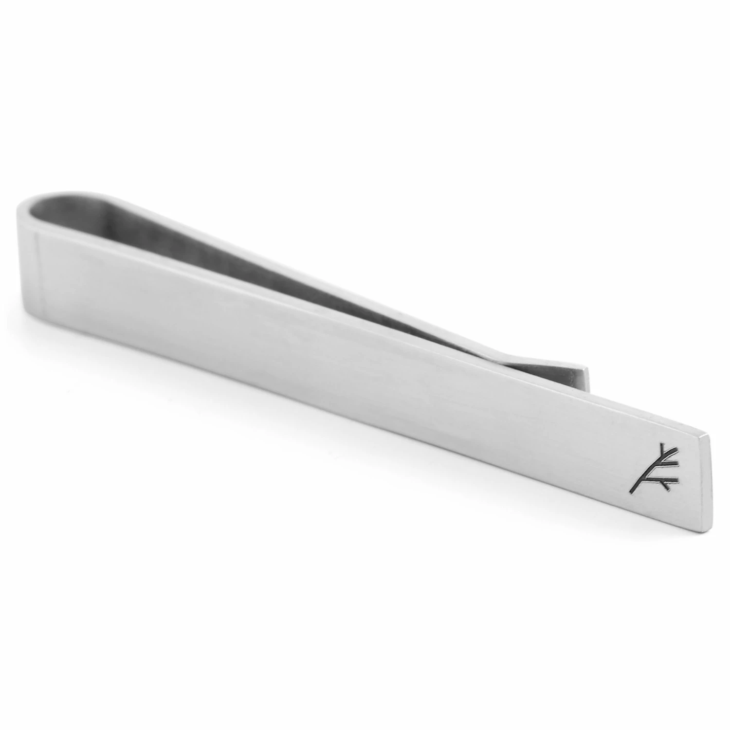 Dashingly designed in Denmark, this tie bar features a brushed, matte surface and an understated slanted branch at the end for an extra touch of elegance.