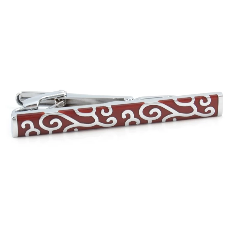 This particular clip has a modern spiral pattern against an auburn background giving it a very regal look.
