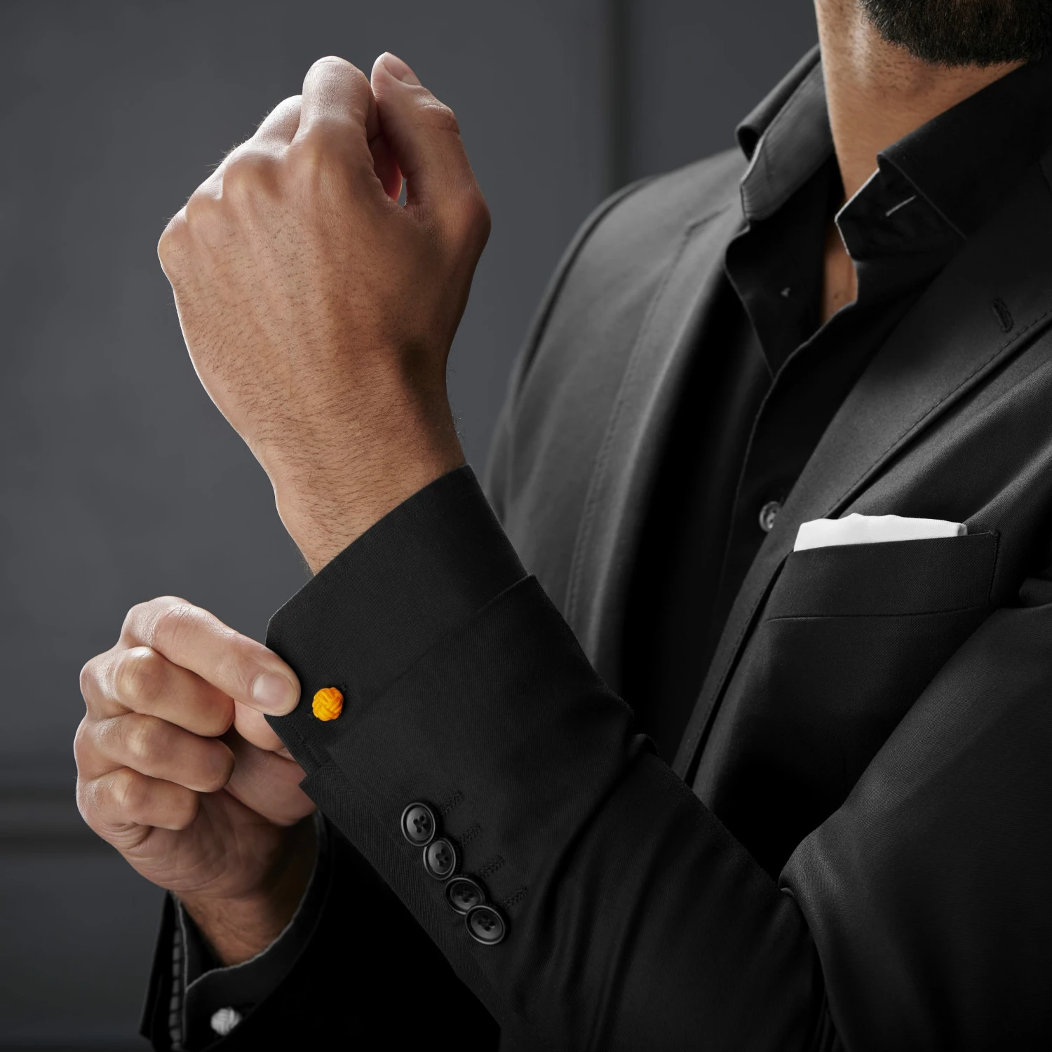 Check out this stylish pair of silk knot cufflinks! Spice up your look and have people take notice with these bright yellow beauties.