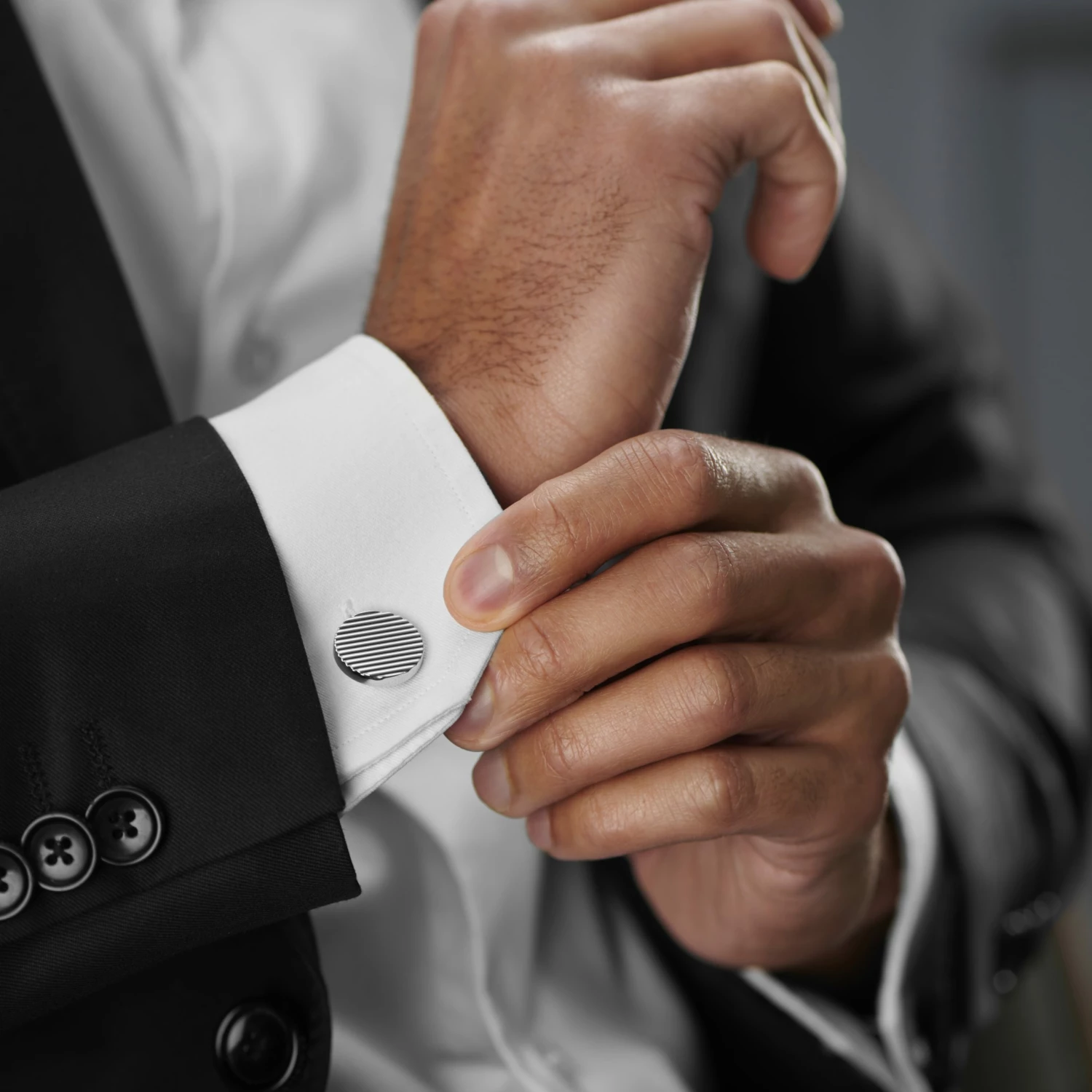 Warren Asher Oval Silver-Tone Etched Surface Cufflinks