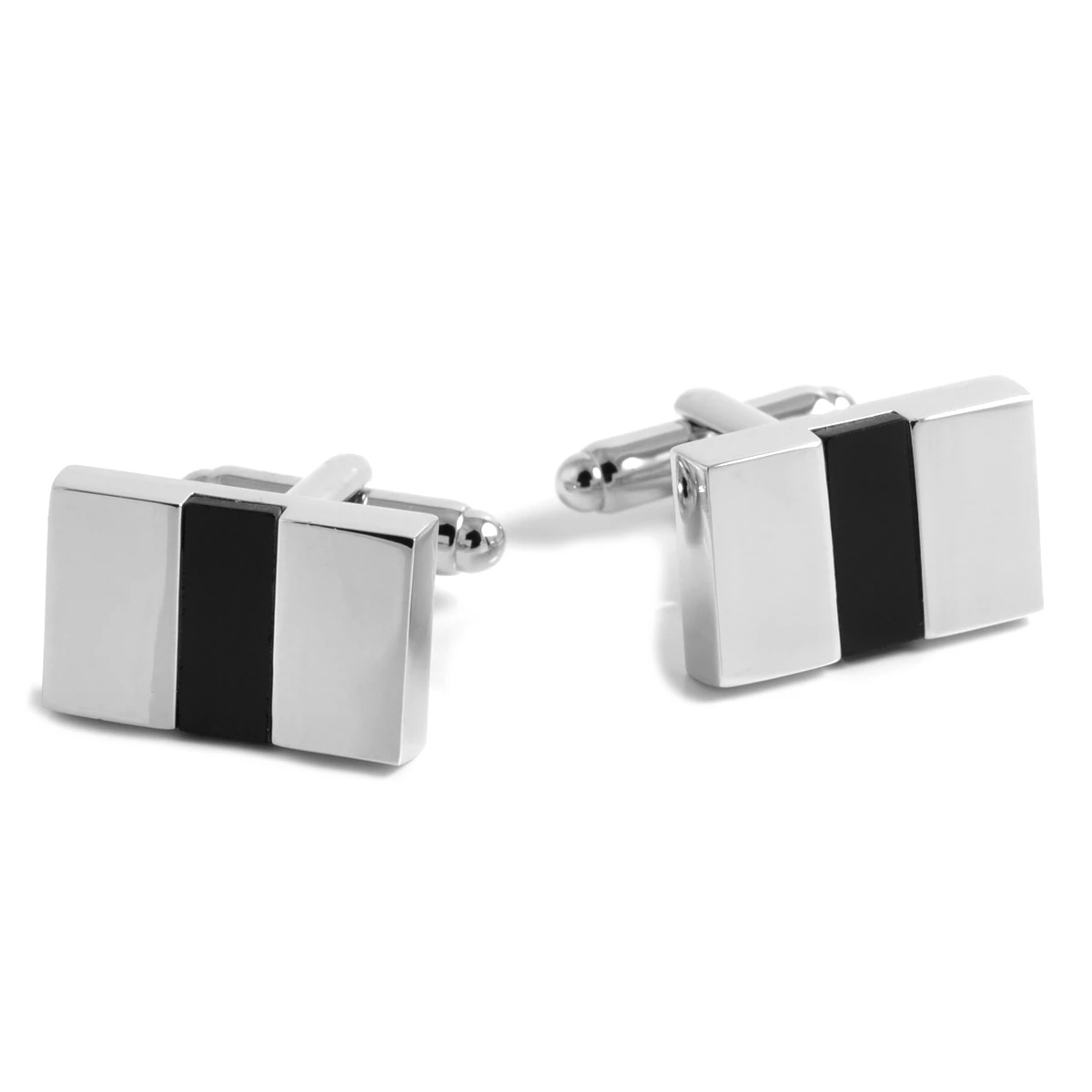 Warren Asher Rectangle Silver-Tone & Black Bar Stylish Cufflinks