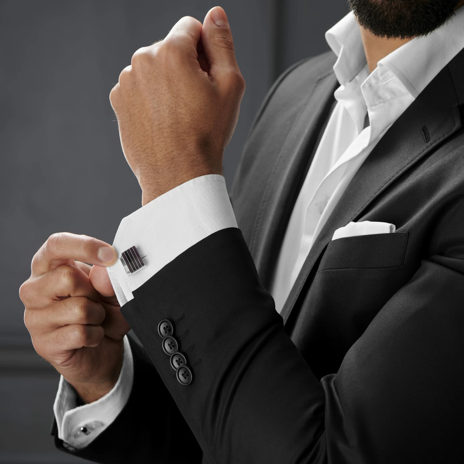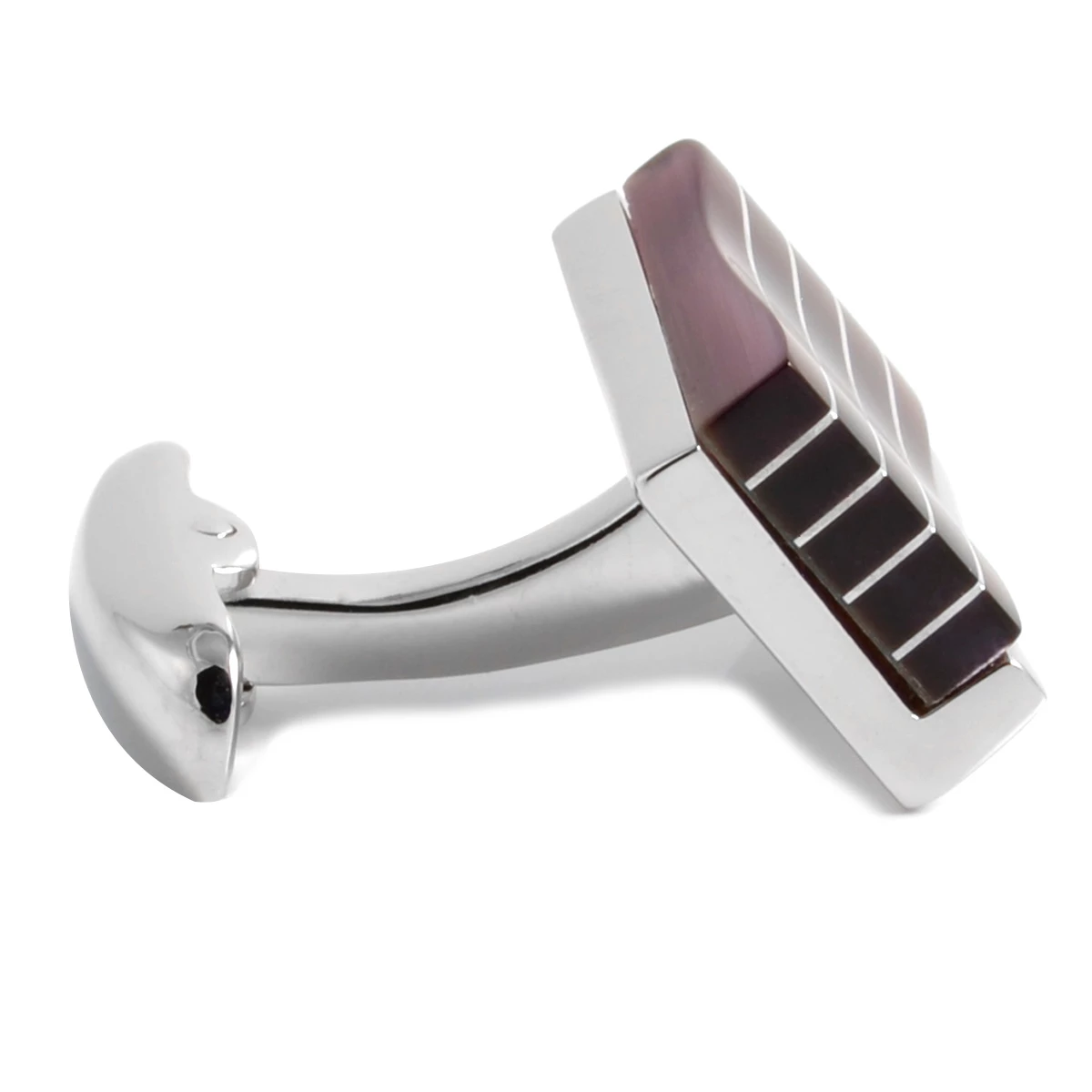 Warren Asher Rectangle Silver-Tone Stylish Maroon Wavy Cufflinks
