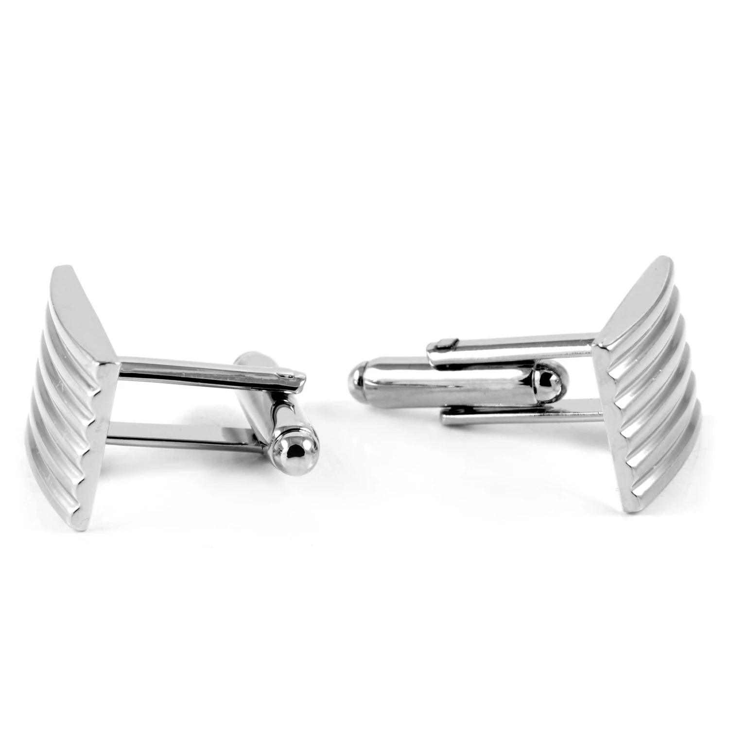 Warren Asher Rectangular Grooved Silver-Tone Cufflinks