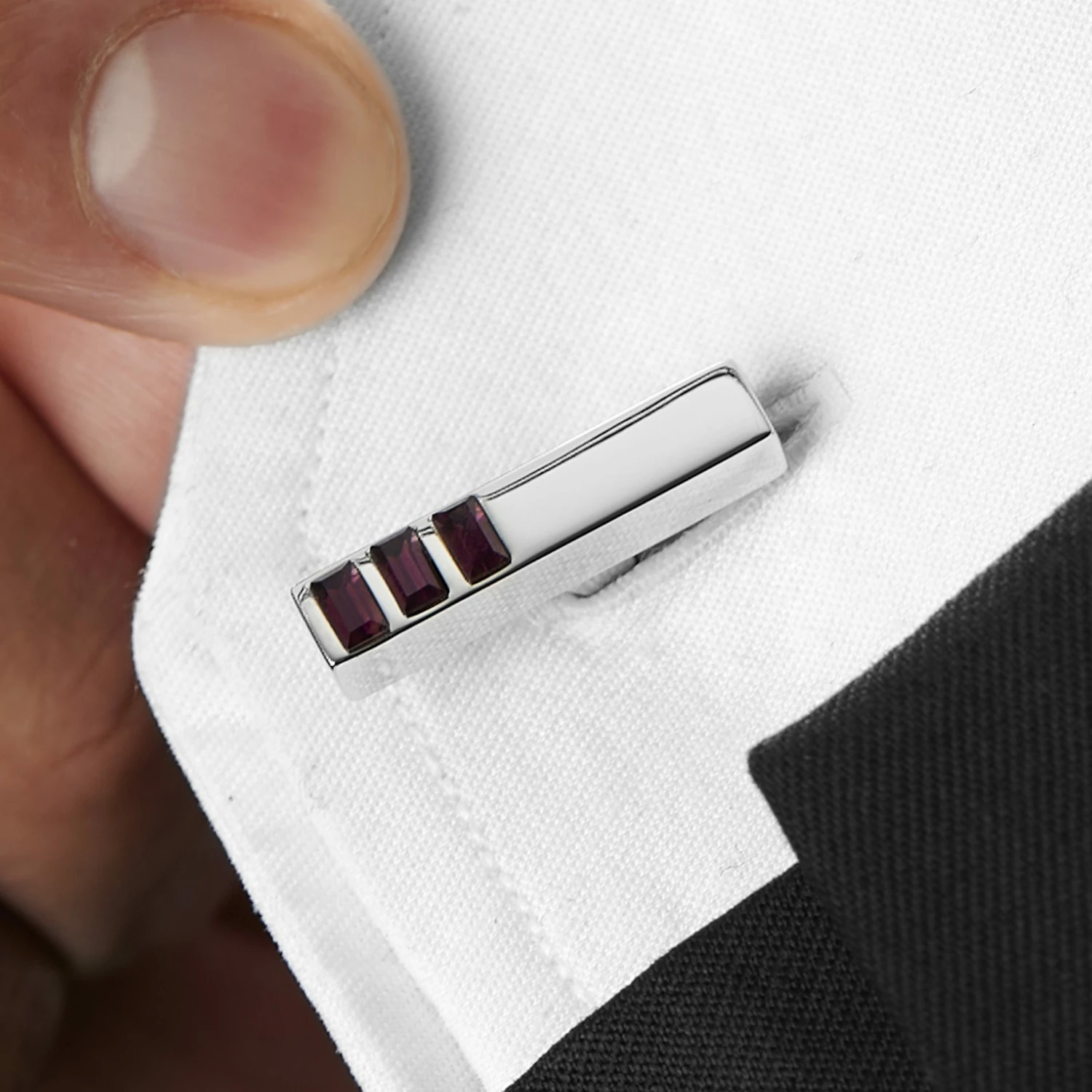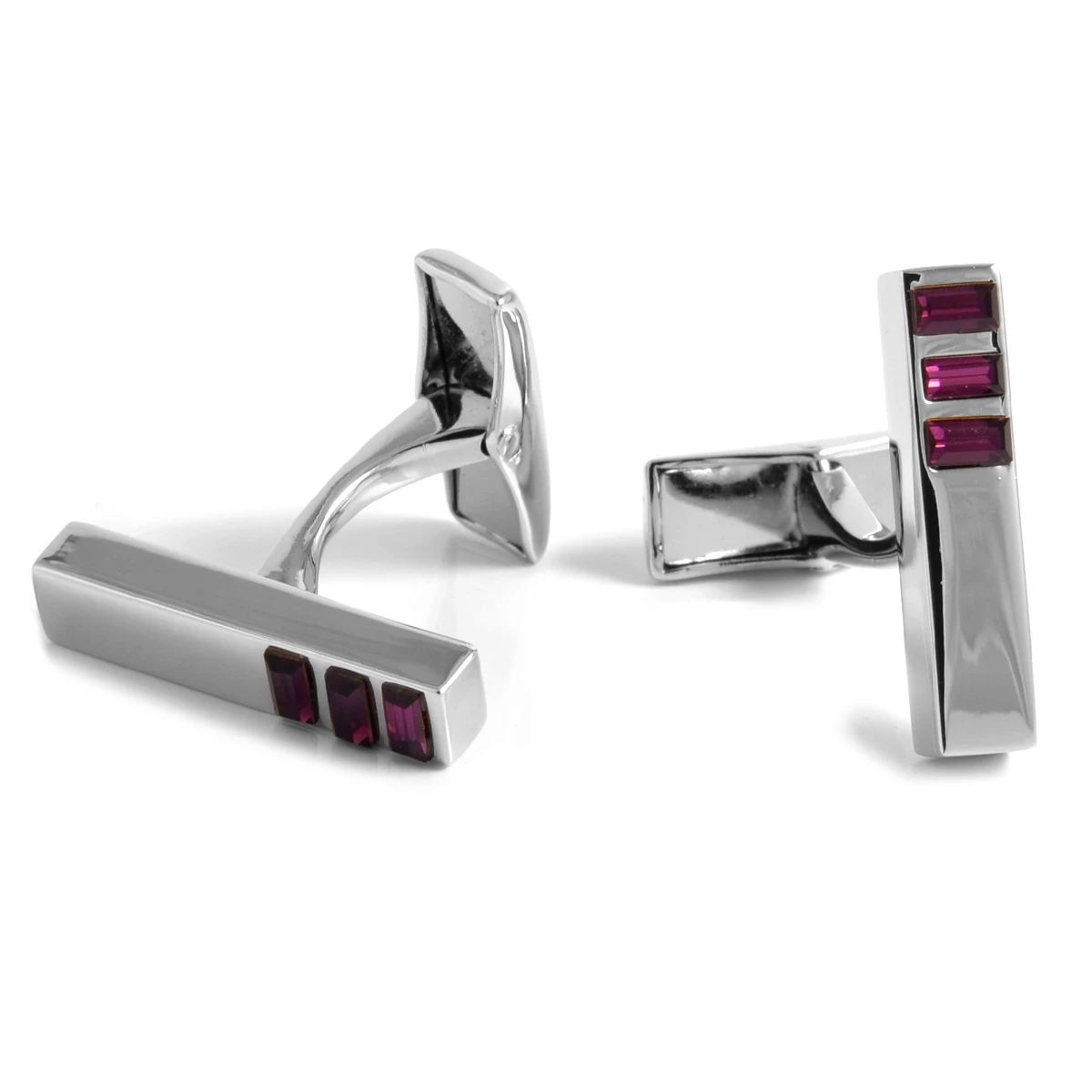 Warren Asher Rectangular Silver-Tone & Purple Stone Thin Oblong Cufflinks