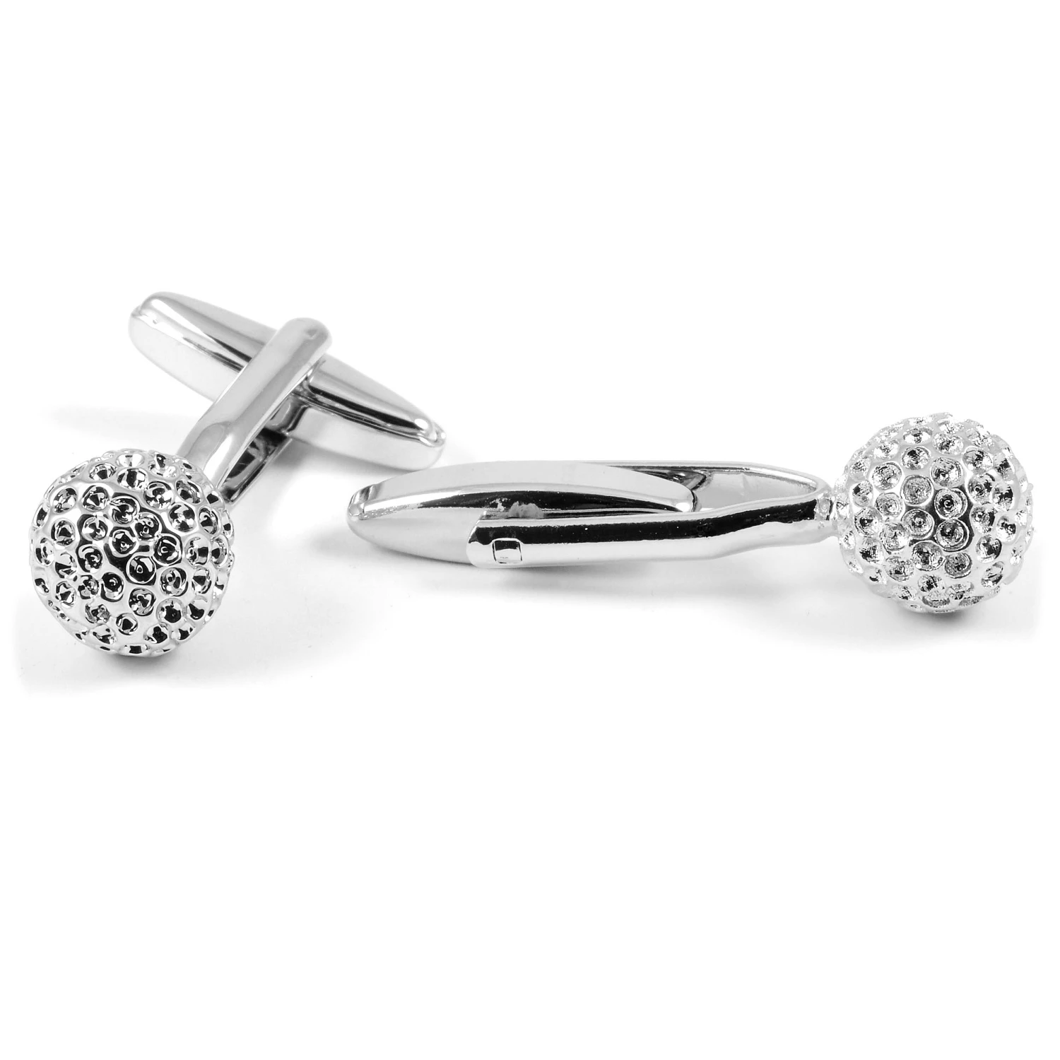 Shiny torpedo style cufflinks depict a pitted silver-toned orb that slightly resembles a golf ball. High-quality copper alloy. Trendhim bag included.