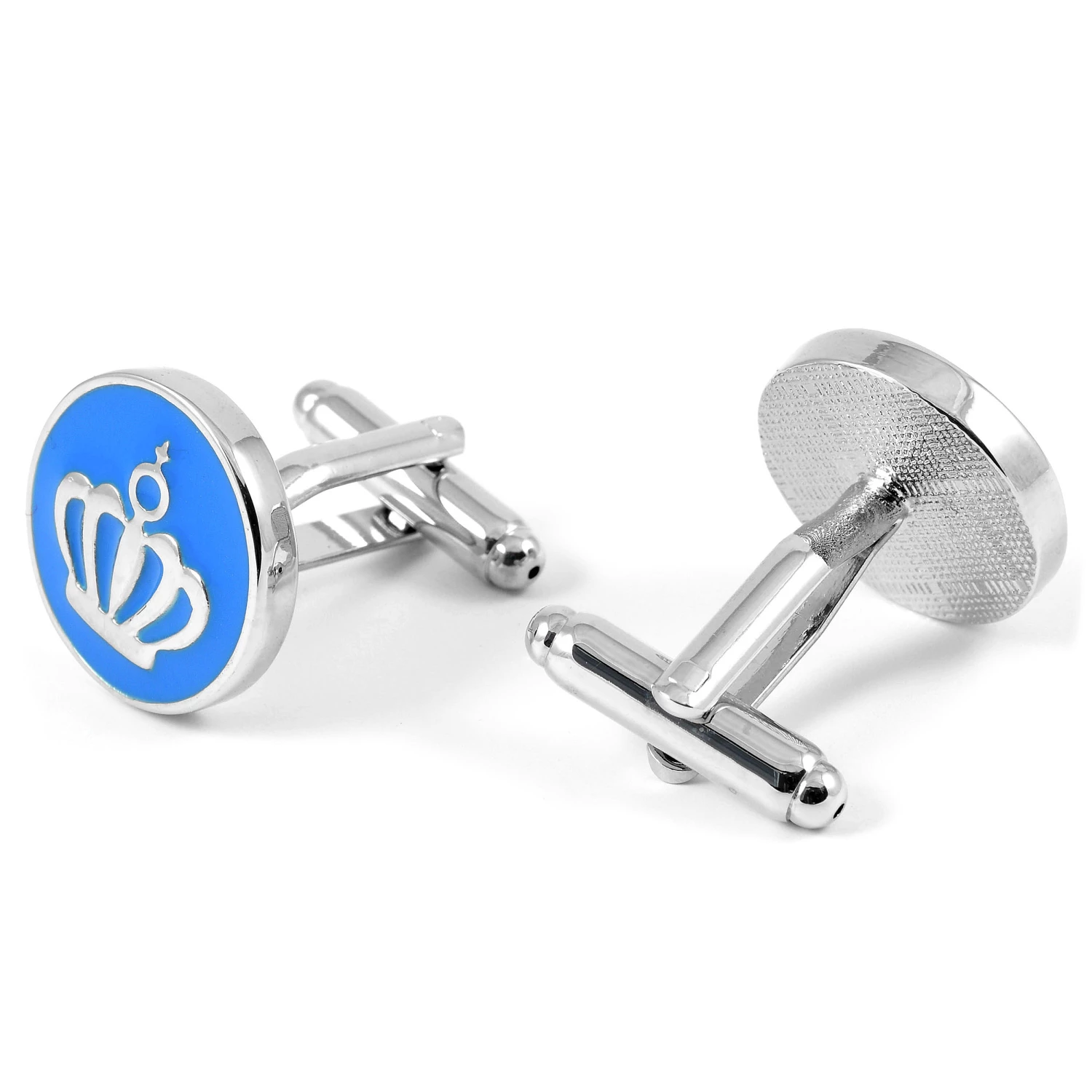 Warren Asher Round Silver-Tone & Neon Blue Crown Cufflinks