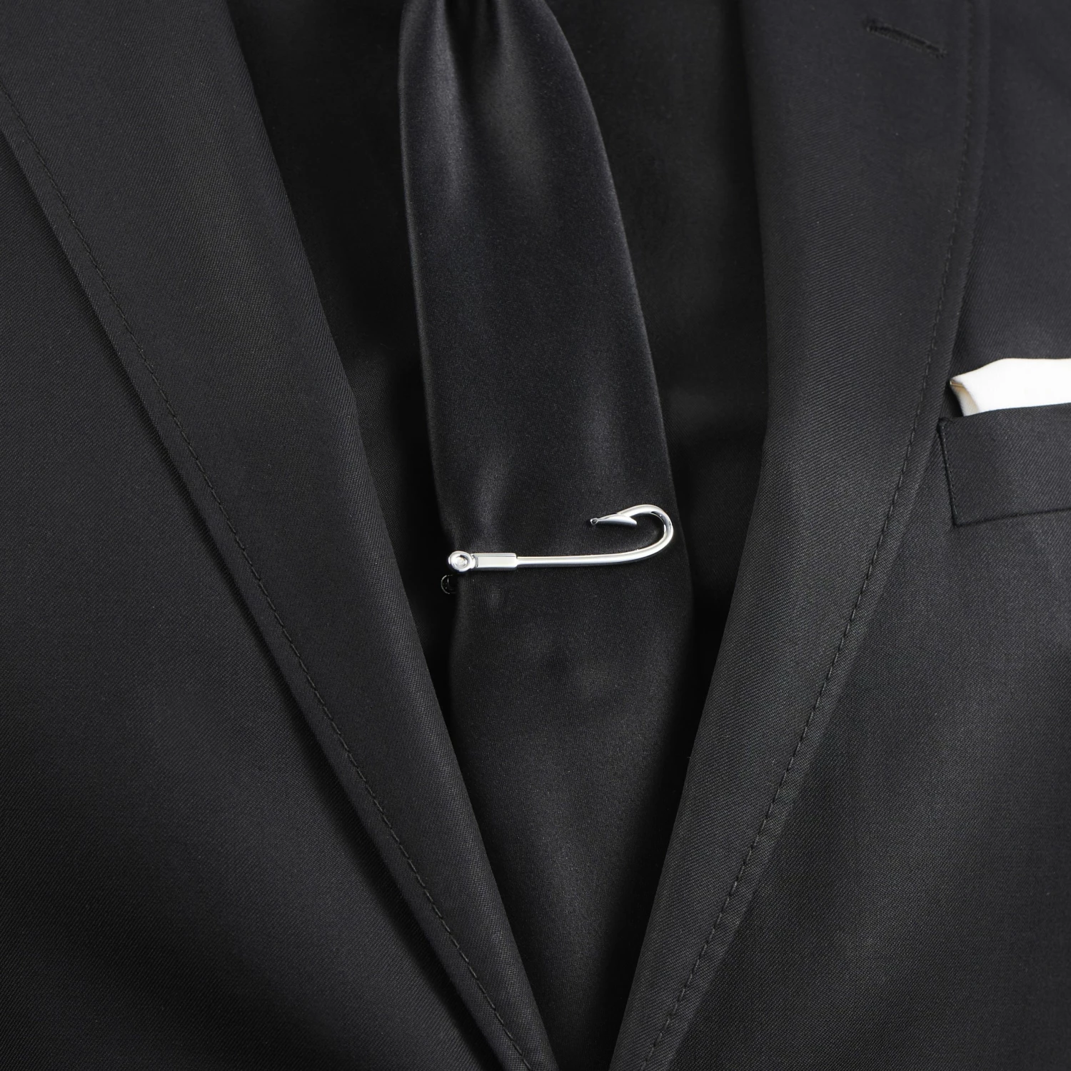 Beautifully detailed like a fisherman’s hook. High-quality clip fastening holds your tie firmly, without damaging the fabric. Perfect length for most modern ties, and easy to match with any outfit.