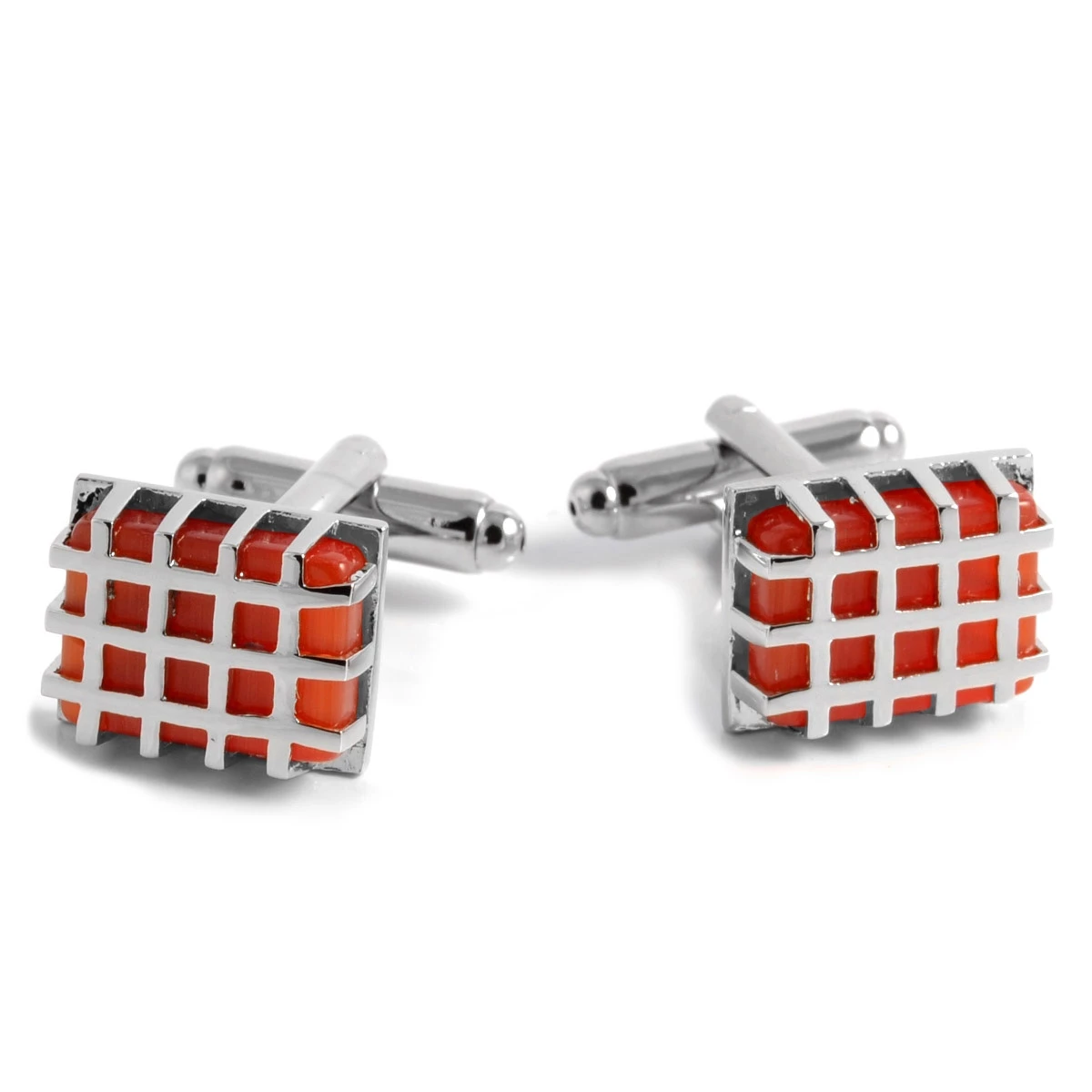 Warren Asher Silver-Tone & Currant Red Grid Cufflinks