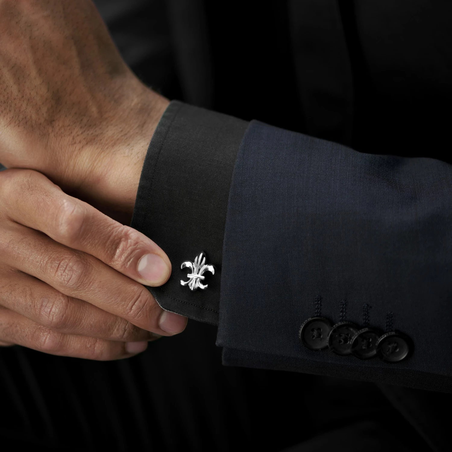 The royal lily (aka fleur de lis) is a popular symbol in French heraldry. Feel like a king while wearing these cool polished cufflinks.
