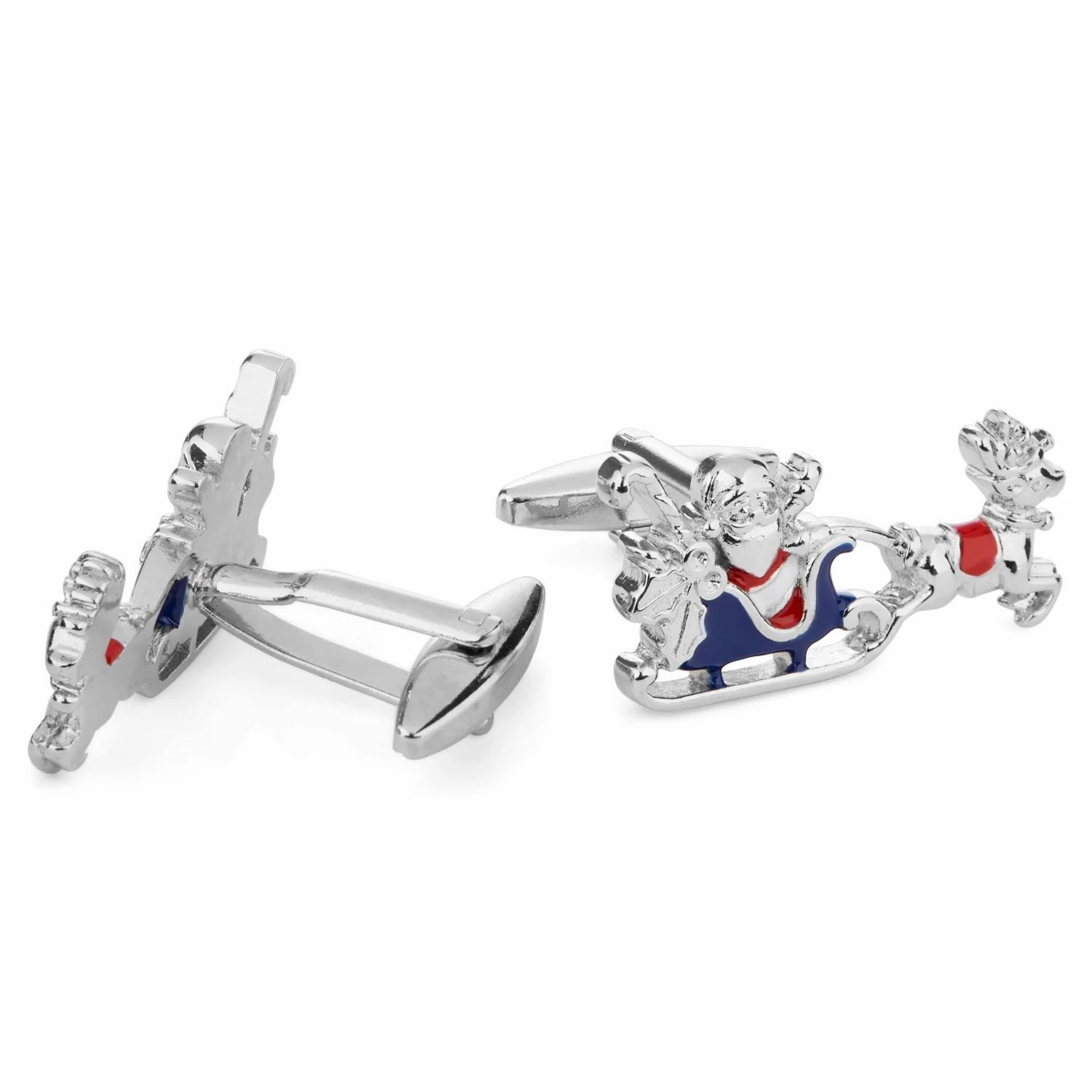 Santa Claus is coming to town with this pair of silver-tone cufflinks. Complete with hard-working reindeer, giant candy cane and holly.