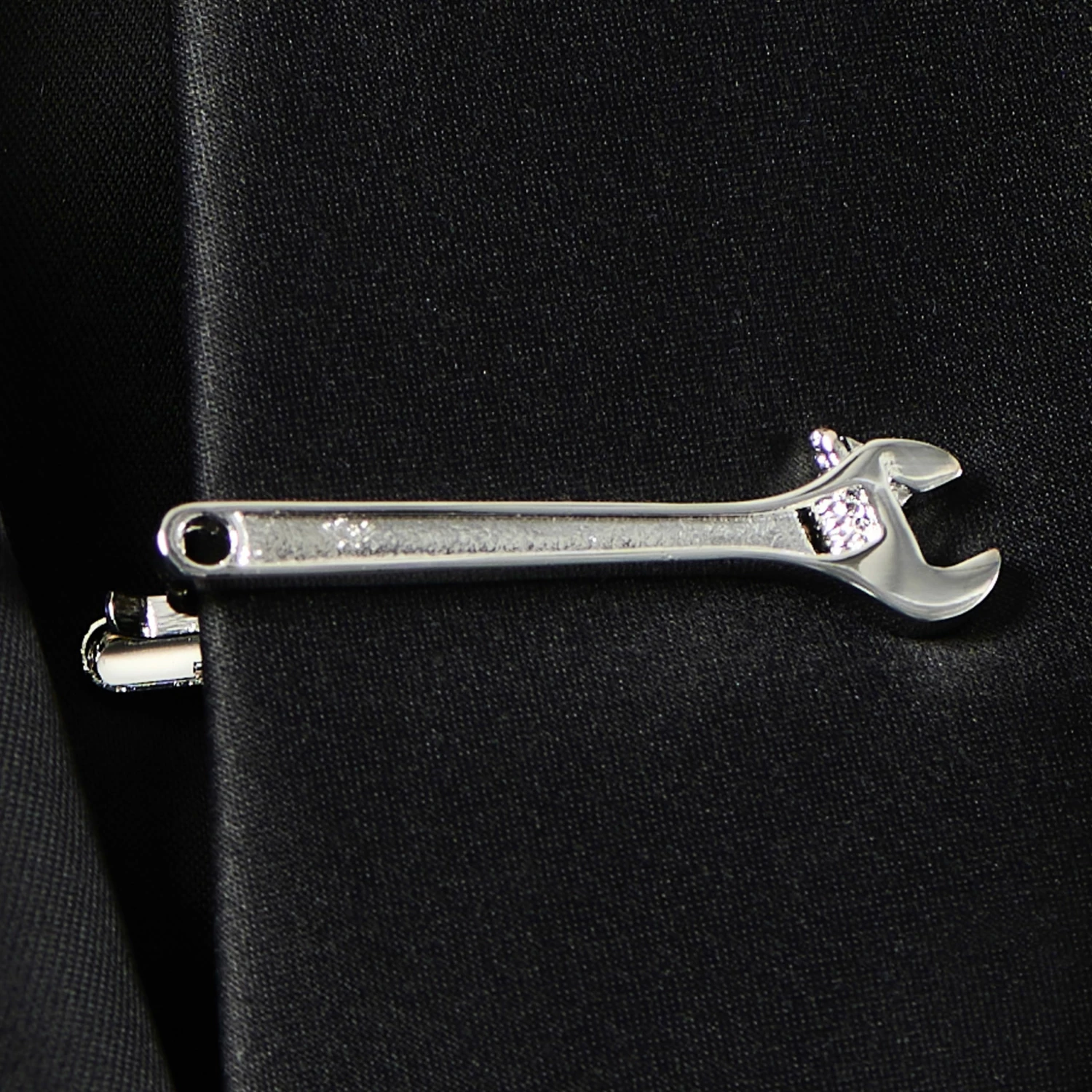Let’s get down to the nuts and bolts of it… Nobody looks good with a tie flapping in their face. Hold yours down with this silver-toned tie clip, shaped like your mechanic’s favorite wrench.