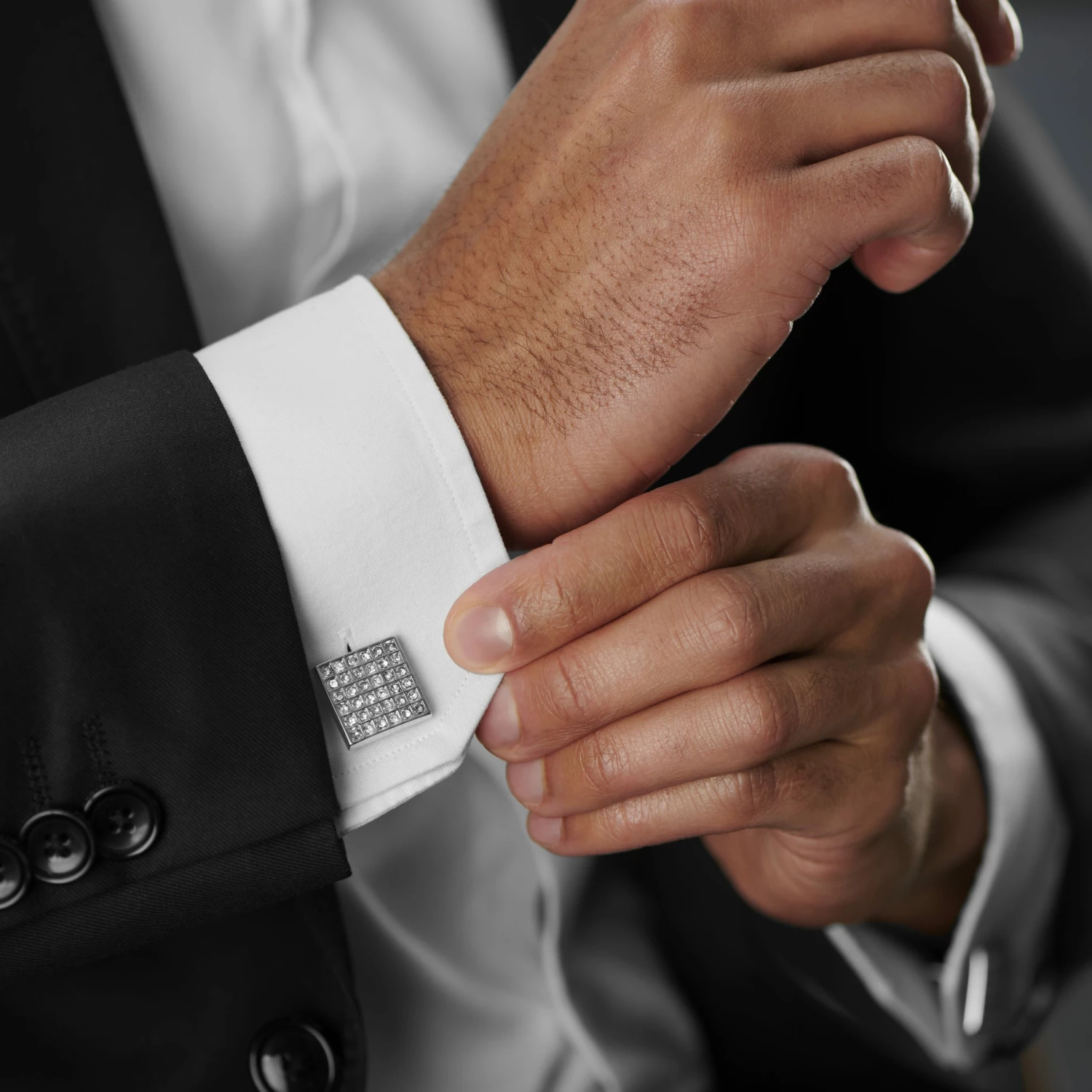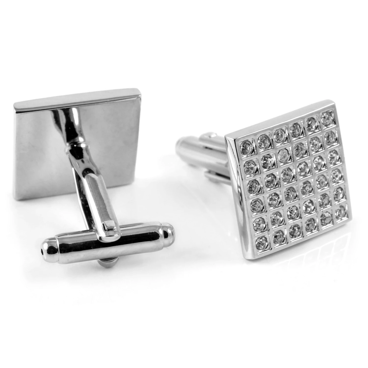 Warren Asher Square Silver-Tone Bling Sparkling Stone Cufflinks